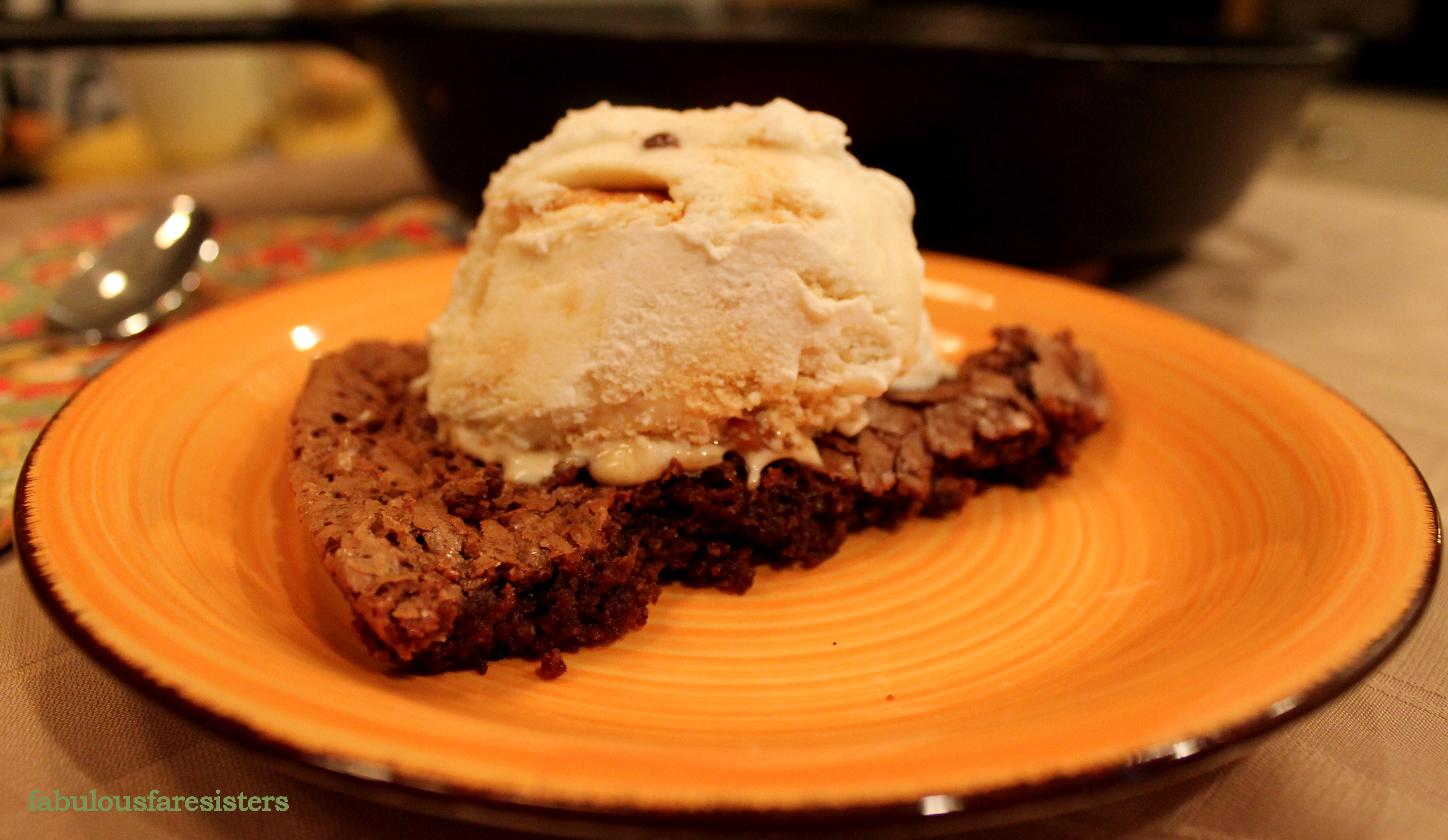 Dessert? What about Brownies…warm chocolately goodness! These brownies are absolutely delicious. They’re wonderful all by themselves, but I topped ours with Salted Caramel Ice Cream. Extra Yummy!