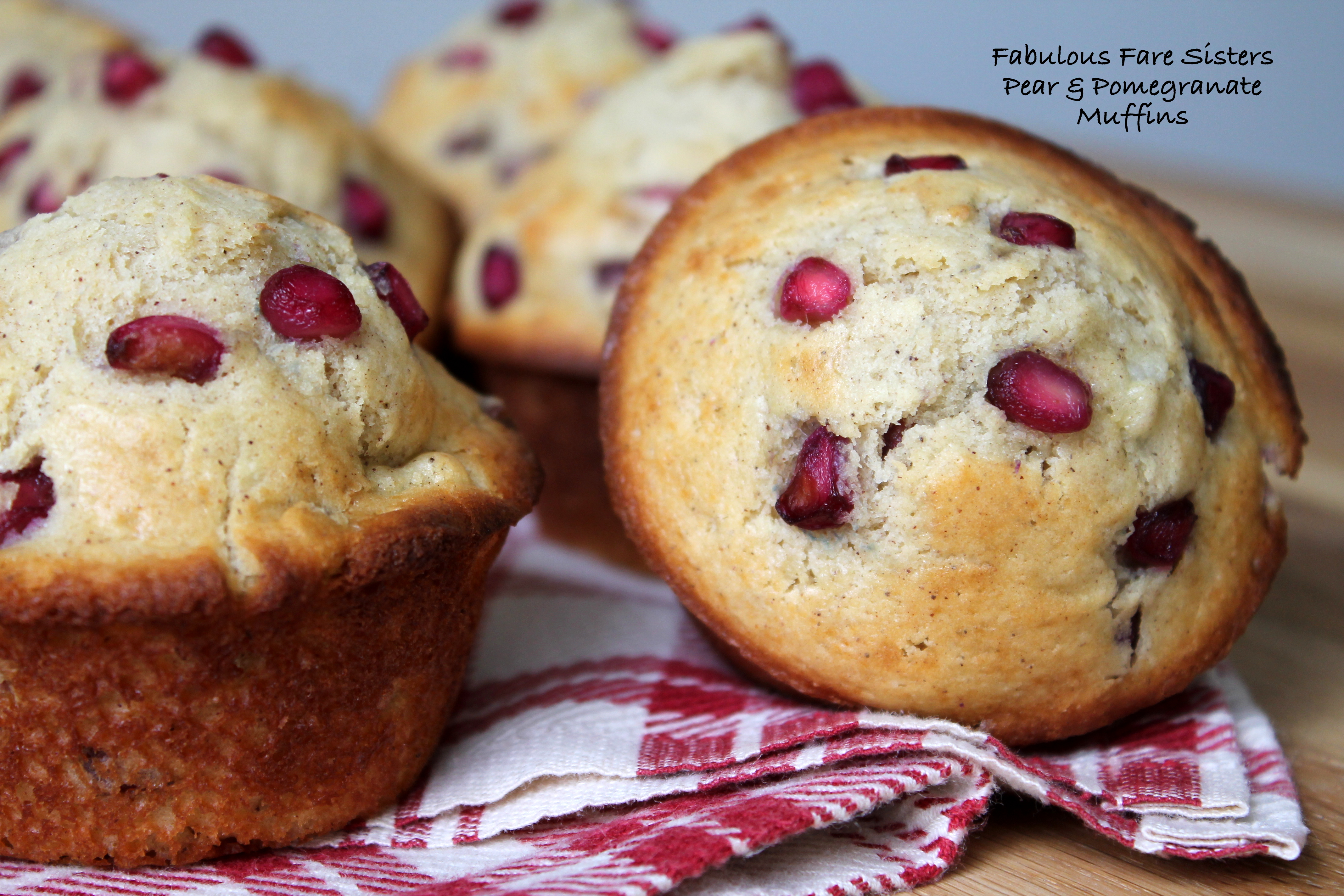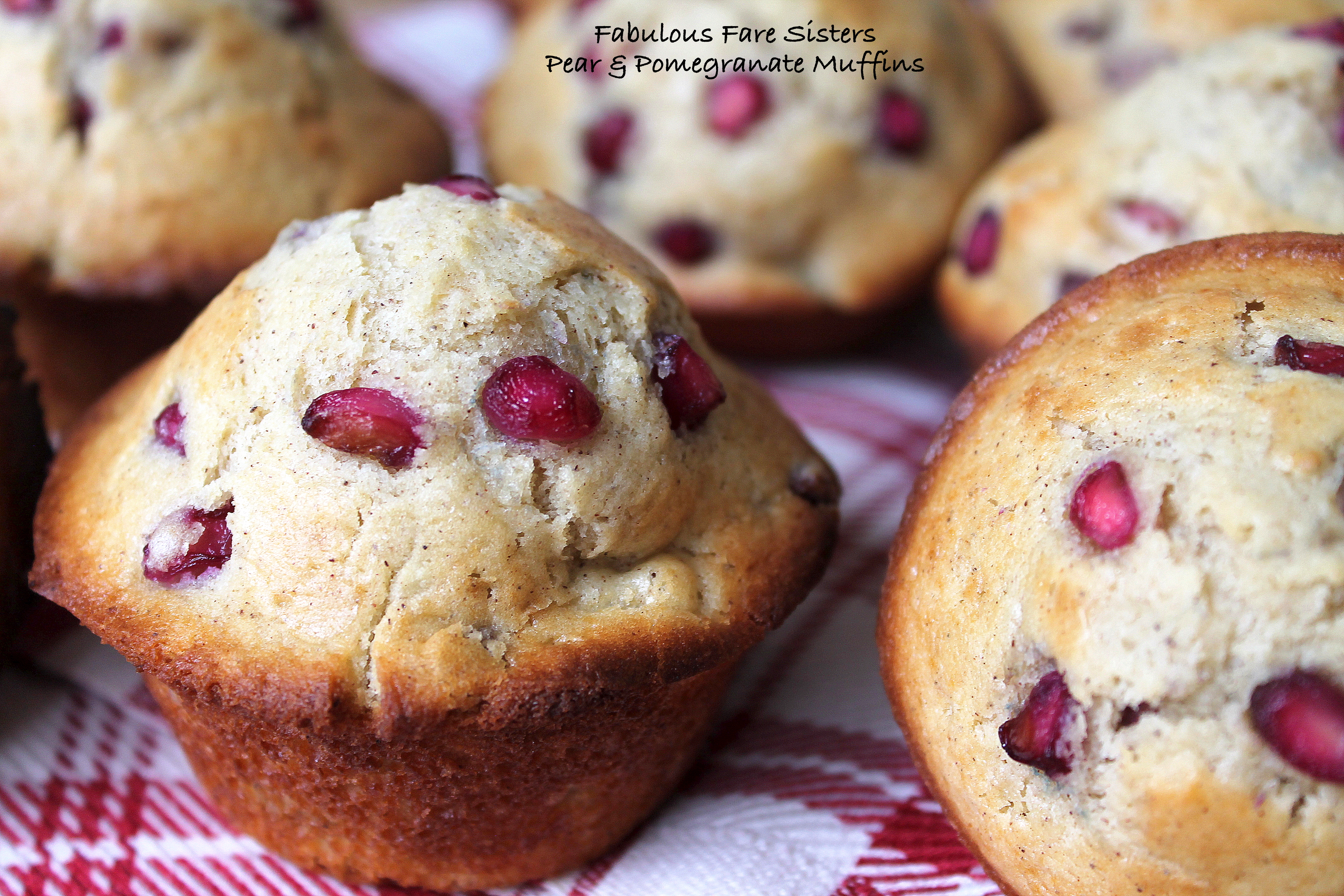 I had a craving for muffins for breakfast and checked my fruit basket…lo and behold a lone ripe pear…so I chopped it up and added it into my traditional muffin batter along with fresh Pomegranate arils…end result was so delicious! I sliced one in half and spread a little butter on it…so good; served with a fresh cup of caffรจ latte, I was in heaven…