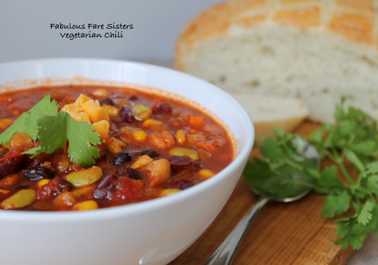 Today I’m sharing a Meatless Meal that is so good you will absolutely not miss the meat! This Vegetarian Chili is so hearty and delicious you’ll be craving seconds…With all the fresh produce of summer now is the best time to make this yummy chili…Top it off with a touch of fresh cilantro, some cheddar cheese and a squeeze of lime and push it over the edge to divine!