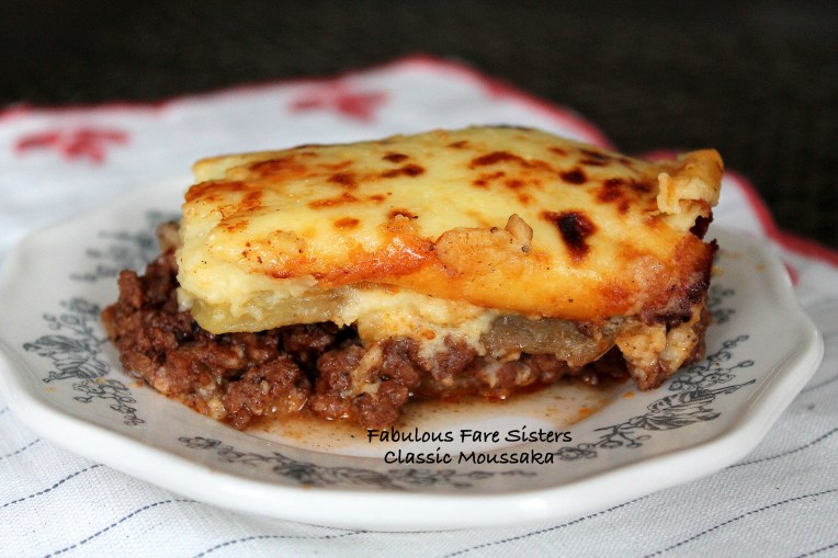 We are huge fans of Greek food…I make a lot of it at home and we also head over to our favorite Greek spots a few times a month (Estia Taverna and Black Olive)…but had never made Moussaka at home until this past weekend…I didn’t want to follow anyone else’s recipe – I knew the flavors very well since I’ve eaten it many times at restaurants…so I sat down and wrote my ideas out in my cooking notebook…shopped for all the ingredients ….then gave it a whirl on Sunday afternoon. It turned out superb! Definitely restaurant quality (can I toot my own horn and say even better than restaurant quality?!) I roasted the eggplant and baked the layer of potatoes before assembling the remaining layers; bringing out the delicious flavors of both, while the beef simmered in a tomato sauce seasoned with cinnamon, allspice and ginger. The final layer is a custard-like béchamel sauce topped with a mix of shredded cheeses…truly scrumptious!