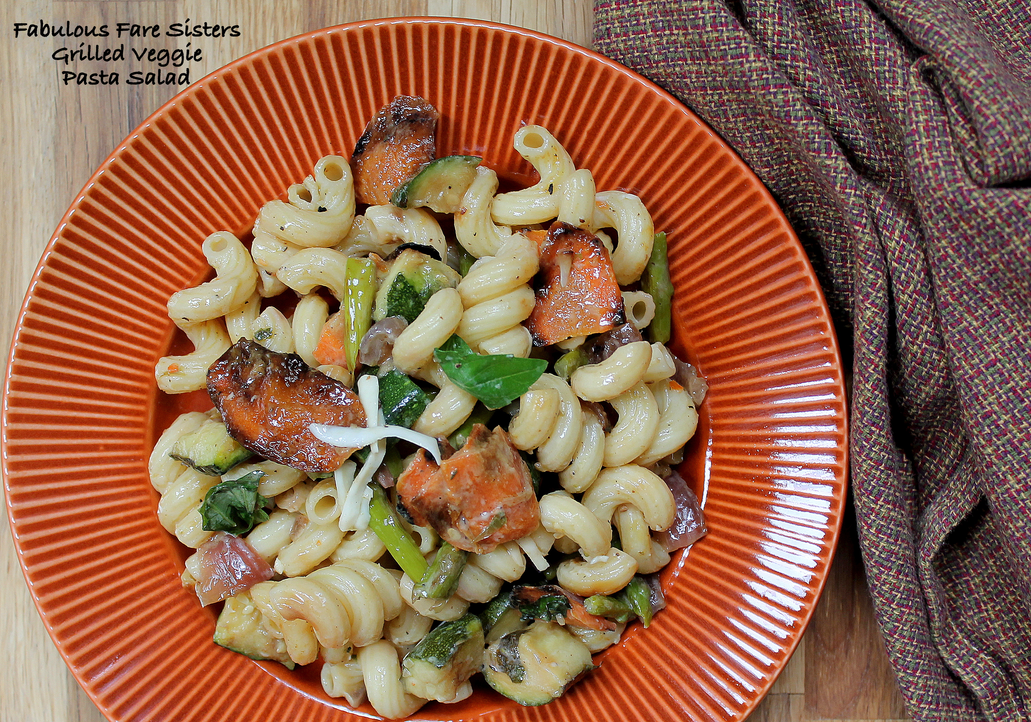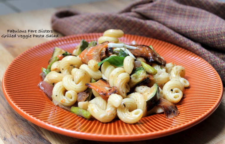 Enjoying summer cookouts are always an adventure! I love to make up new recipes to share at these celebrated events…twisting and turning ordinary side-dishes into spectacular fare. This delicious salad takes all the flavor of grilled veggies into a pasta salad that needs no refrigeration and is perfect to bring to your next pot luck!