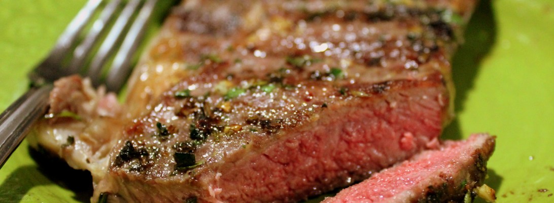 Garlic-Herb Delmonico Steaks & Caramelized Pear Salad