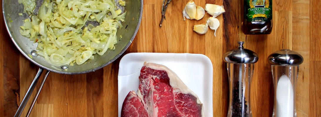 Porterhouse Steak with Caramelized Onions & Rosemary