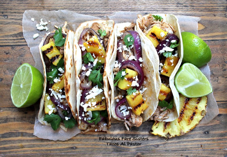 Today is Taco Tuesday! These tasty Tacos al Pastor are so simple to make. I shared a recipe for Tacos al Pastor made in a slow-cooker a few years ago and decided to make one for the stove top… although the original al Pastor is pork that is made on a spit-grill, I don’t have one of those, so I cut a pork tenderloin into chunks then braise them in a pineapple-lime broth until they fall apart. Once shredded they fit perfectly into soft corn tortillas. With the addition of sliced red onion, fresh cilantro and shredded cotija cheese these Tacos al Pastor are ready-to-eat!