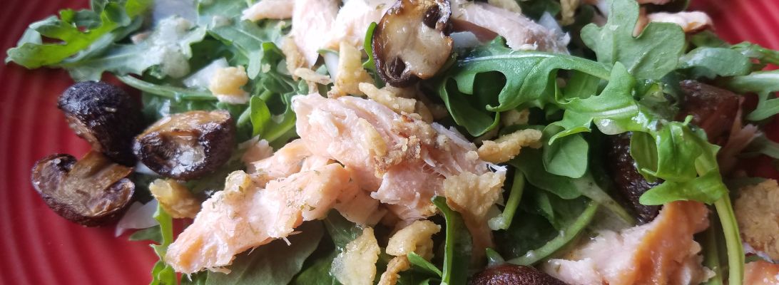 Smoked Salmon & Roasted Cremini Mushroom Salad